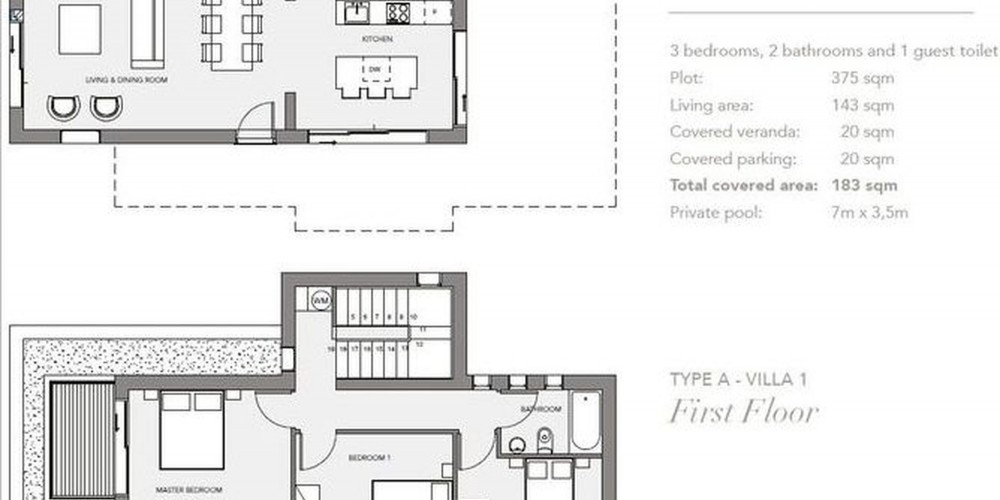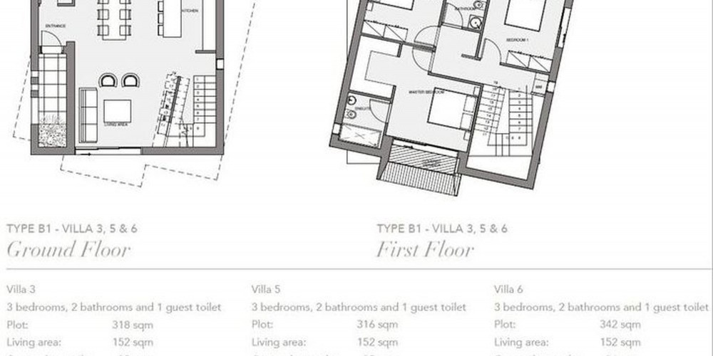 Подобные, но не идентичные с точки зрения архитектурных линий и стиля для создания эстетически привлекательного впечатления, каждая 2-этажная вилла основана на просторной планировке с 3 спальнями и гостиной открытой планировки. Выйдите на внутренний дворик, чтобы расслабиться и освежиться в собственном бассейне (бассейн за дополнительную плату) с окружающей зоной для загорания. Виллы состоят из двух уровней, предоставляя вид на море из спален на верхнем этаже.