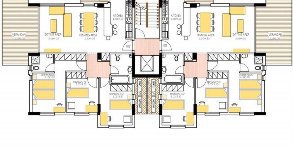 Проект будет иметь современный фасад здания, охраняемый проход и главный вход. Особое внимание было уделено разработке функциональной планировки квартир без лишних затрат, просторных и удобных для проживания. Окна кухни / столовой / гостиной открытой планировки выходят на большие крытые веранды, а спальни были распределены на боковом крыле, чтобы обеспечить конфиденциальность и уменьшить шум.