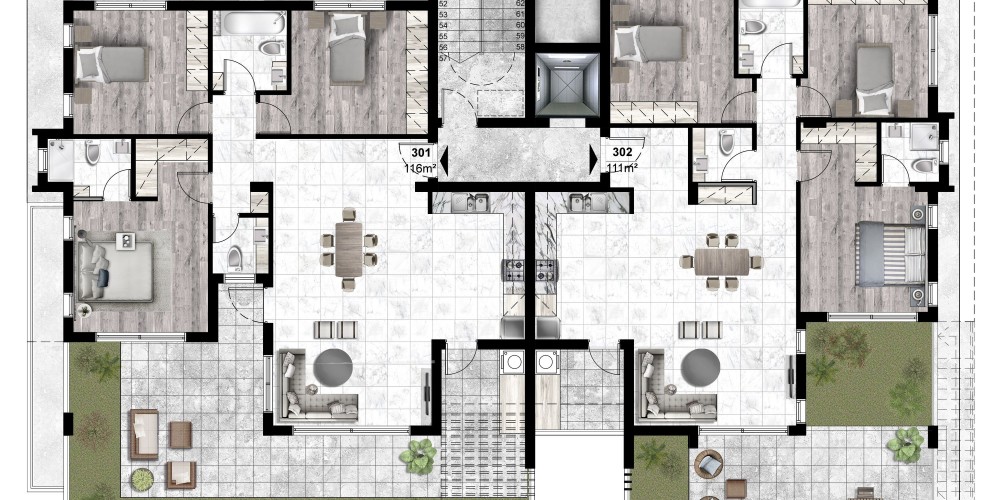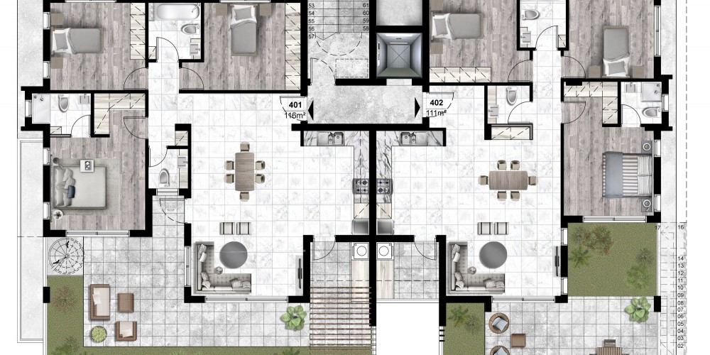 T090 - Стильные квартиры с одной спальней и пентхаус с тремя спальнями и собственным садом на крыше в Лимассоле