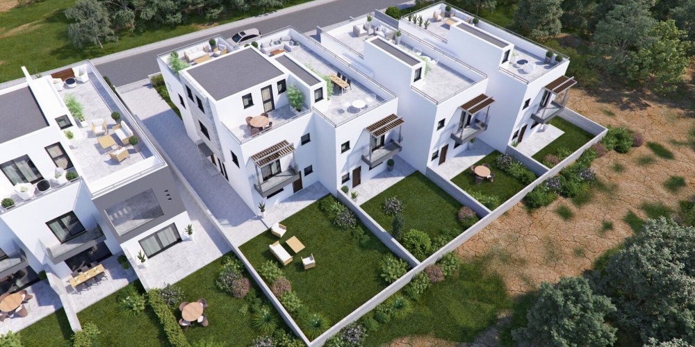 Проект состоит из 3-х и 4-х спальных вилл и таунхаусов в жилом районе Героскипу. Гостиная и столовая имеют открытую планировку. Крытые и открытые веранды имеют выход в большой сад. Все удобства находятся в 5 минутах ходьбы: школы, рестораны, бары, центр города, пекарни и т. д.