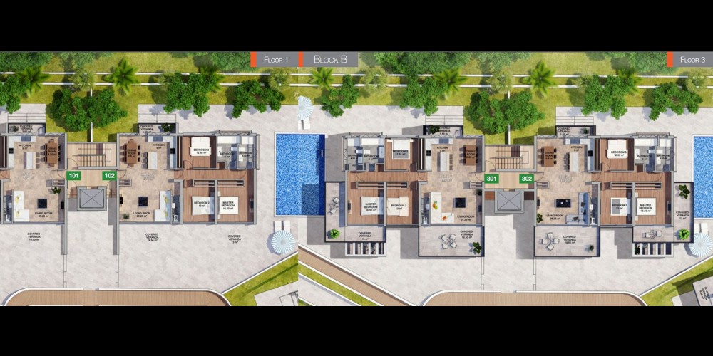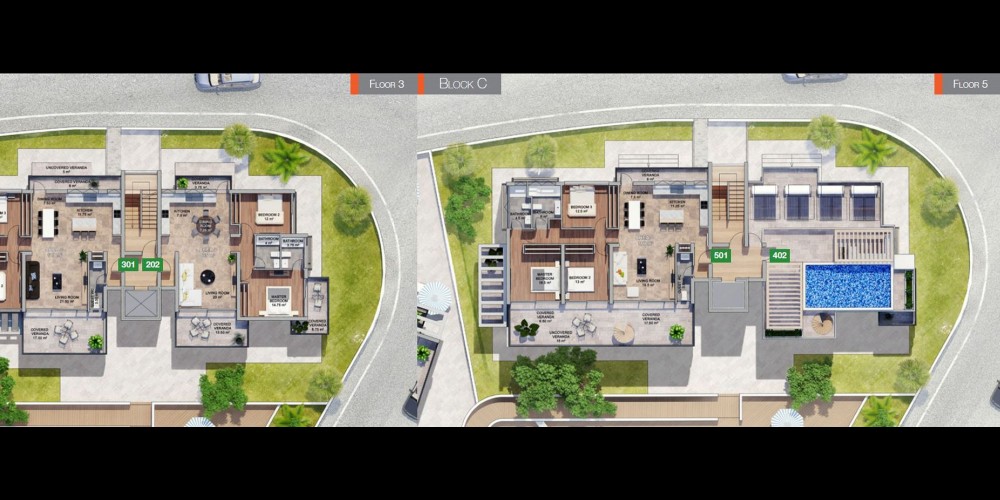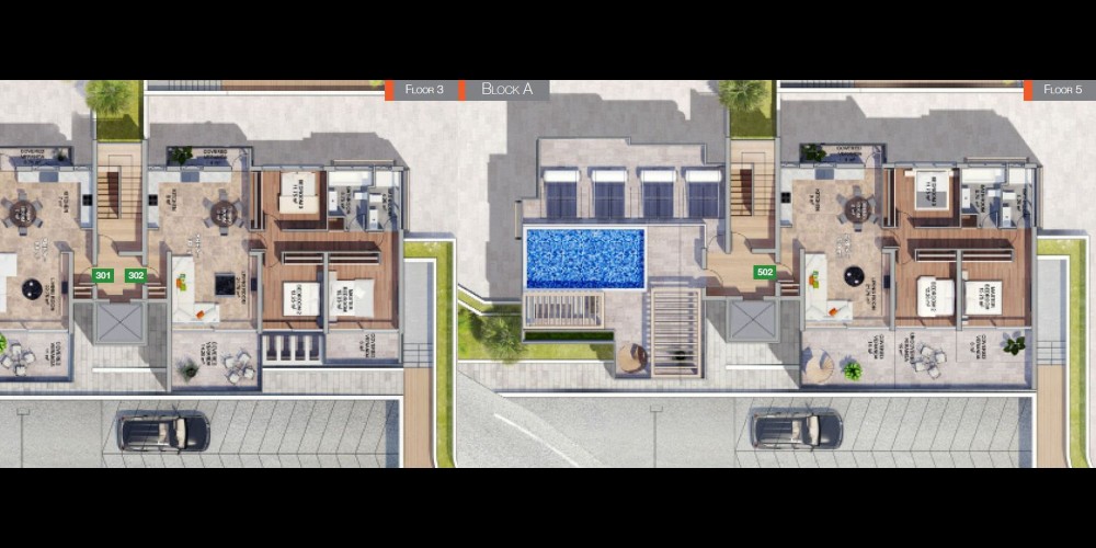 Пентхаусы на верхнем этаже имеют просторные частные террасы с частными бассейнами. Высота потолков каждой квартиры составляет 3.15 метра, а уровень отделки приятно удивит самого взыскательного покупателя. С каждой веранды открывается поистине захватывающий вид на Средиземное море, горы, Лимассол и его живописные пригороды.