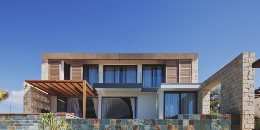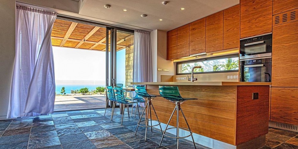 На первом этаже виллы находится гостиная с видом на море, оборудованная кухня открытого плана и обеденная зона, ТВ-зал с камином, частный кабинет, гостевой туалет и кладовая.