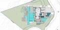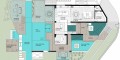 На нижнем этаже находится отдельная квартира-студия (комната для горничных) с душевой комнатой, оборудованная кухня и место для стирки. Также две спальни обе с душевыми комнатами (одна из ванных комнат имеет ванну) и прямым выходом к внешнему бассейну. Есть просторная комната для отдыха. Кава / винный погреб с каменными стенами из габиона. Тренажерный зал, внутренний бассейн и уединенный сад во внутреннем дворе.