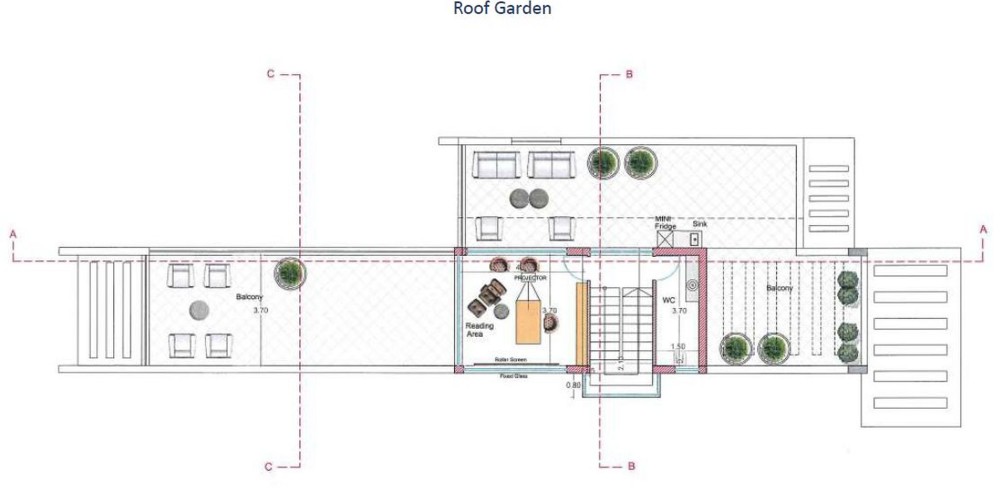 В составе открытой веранды сад на крыше 70 кв.м.