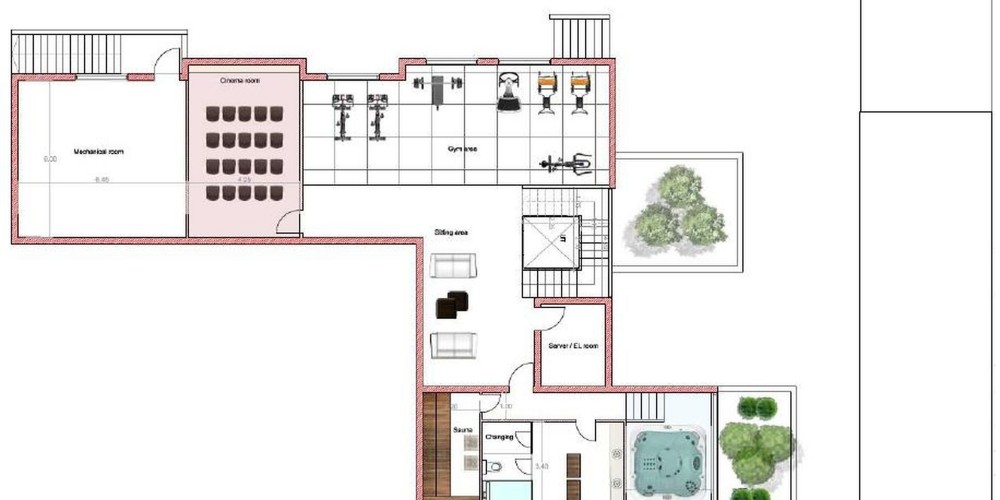 Дополнительный полуподвал площадью 290 м2 может быть спроектирован в соответствии с требованиями клиента как дополнительные комнаты или зоны, такие как спальня с ванной комнатой, тренажерный зал, кинозал, подсобное помещение, бар, винный погреб, джакузи, сауна, кладовая и т. д.
