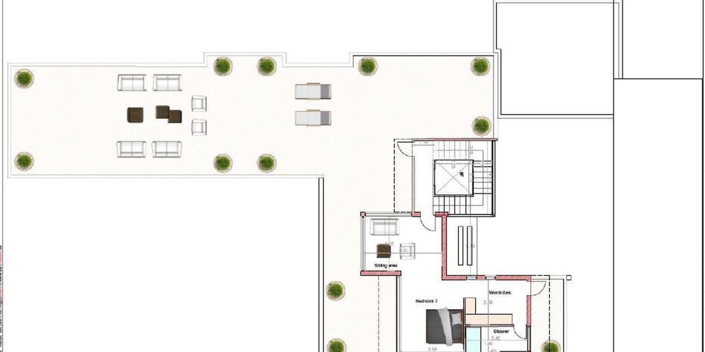 В составе открытой веранды сад на крыше 190 кв.м.
