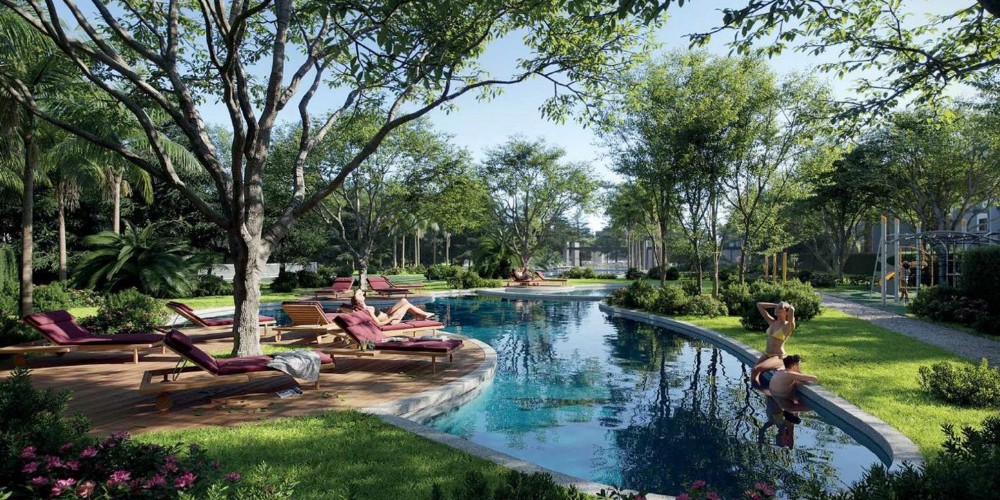 Это закрытый экологичный комплекс с 315 апартаментами (1, 2, 3 и 4 спальни), большим количеством зелени (почти 44 000 растений и деревьев) и множеством объектов инфраструктуры, включая большие бассейны , баскетбольный и теннисный корты, тренажерный зал, мини-супермаркет, бизнес-центр, велодорожки, лужайки для занятия йогой, детские площадки, кафе/ресторан на участке почти 100.000 кв.м