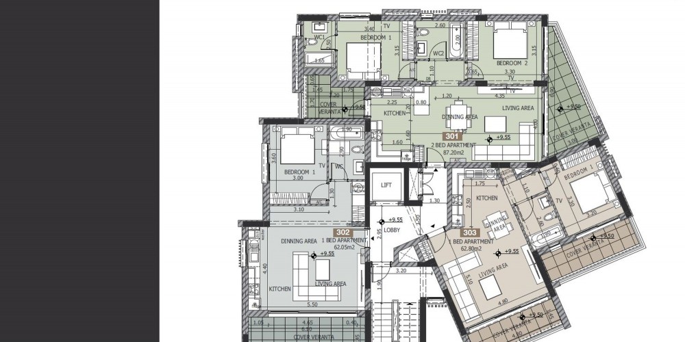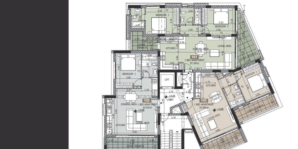 Современное здание с изысканным вкусом. Комплекс состоит всего из 13 квартир и 5 уровней с просторными жилыми помещениями, спроектированными с использованием высококачественных европейских брендов. Каждая квартира отличается комфортом и стилем. Умное обустройство пространства дополнено высокими стандартами отделки и прекрасным видом на далекие холмы. Проект расположен в Агиос Тихонас, в тихом районе. Гостиная и обеденная зона открытой планировки с окнами от пола до потолка выходят на большой балкон с видом на горы и Средиземное море.