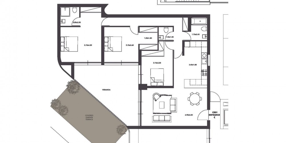 Комплекс состоит из квартир с одной, двумя, тремя и четырьмя спальнями, с общим бассейном, подземной парковкой и ландшафтными садами, окружающими здание. Особенности проекта включают в себя круглосуточный охраняемый и закрытый доступ, крытую парковку для всех квартир и частные кладовые.