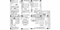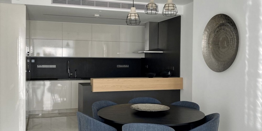 Общая жилая площадь открытой планировки оборудована современной кухней, которая также включает в себя гостиную, а также офис. В гостиной установлены цельностеклянные окна, обеспечивающие беспрепятственный панорамный вид. В квартире есть одна главная спальня с гардеробной и отдельной ванной комнатой, две спальни со встроенными шкафами с общей ванной комнатой, а также гостевой санузел.