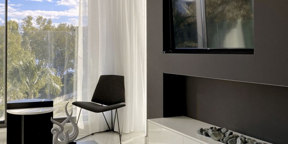 Недвижимость была полностью преобразована в современное жилое пространство, оборудованное со современной техникой, включая камин с этанолом, полы с подогревом, солнечные батареи для экономии энергии, гардеробную и встроенные шкафы.