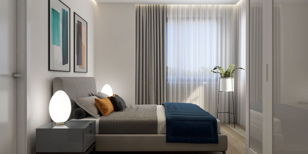 Две другие спальни имеют встроенные шкафы и общую ванную комнату. Солнечные батареи для энергосбережения, электрические жалюзи и интеллектуальная система делают жизнь комфортной и легкой.