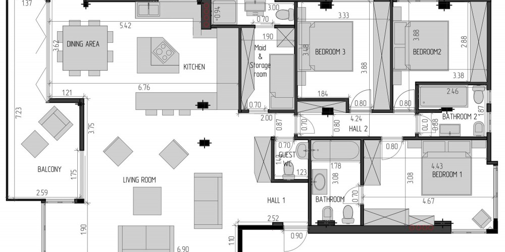 В качестве дополнительного бонуса мы предусмотрели комнату для горничной с собственной маленькой ванной, которая также может служить прачечной и кладовой.