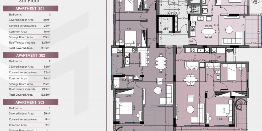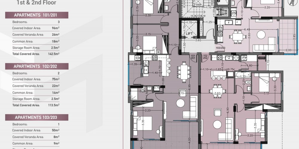 Проект состоит из квартир с 1, 2 и 3 спальнями, а также 2 пентхаусов с частной террасой на крыше и находится в непосредственной близости от всех необходимых удобств: супермаркеты, пекарни, рестораны, кафе и банки находятся в нескольких минутах ходьбы. Кроме того, My Mall Limassol и Cyprus Casino находятся всего в нескольких минутах езды от проекта.