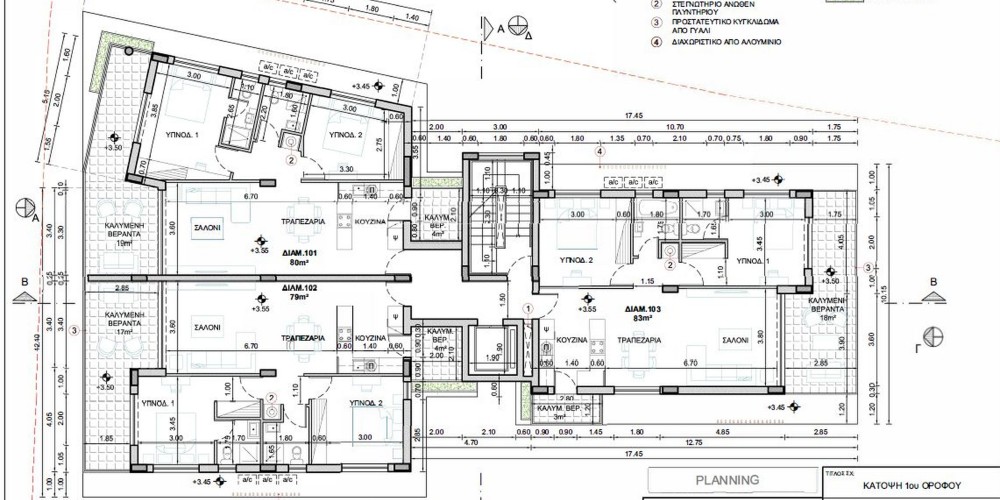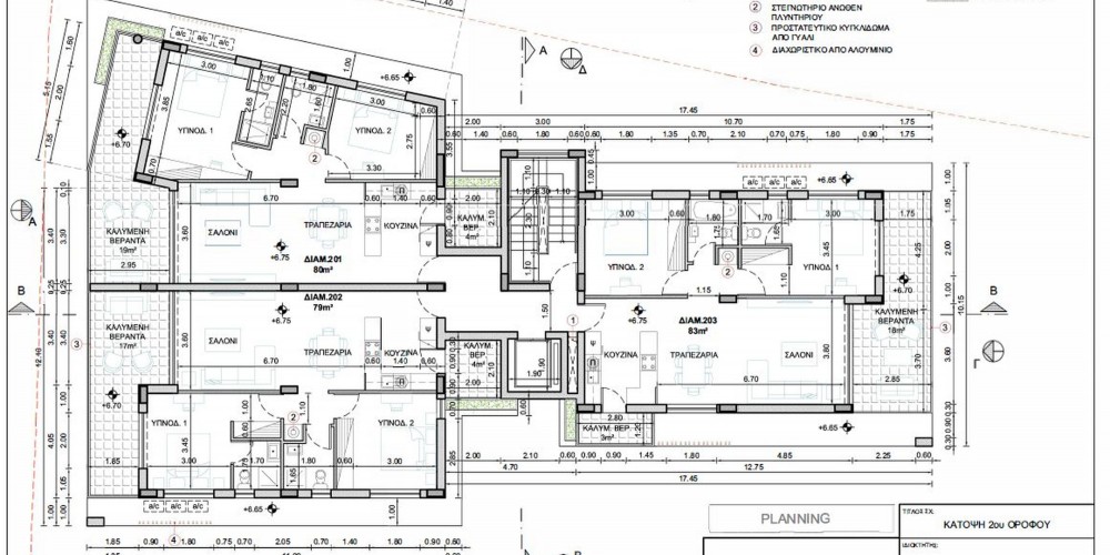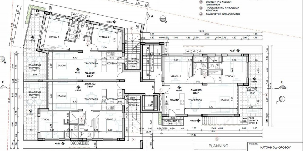 Здание состоит из 4-х этажов, 10 квартир с двумя спальнями и 1 квартиры с тремя спальнями. 3 квартиры на верхнем этаже включают сад на крыше с панорамным видом на Ларнаку.