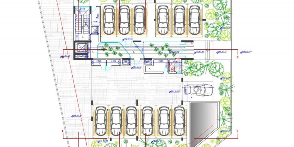 Проект состоит из 21 двухкомнатной и 3 трехкомнатных квартир на десяти этажах. Каждая квартира имеет собственное современное крытое парковочное место.