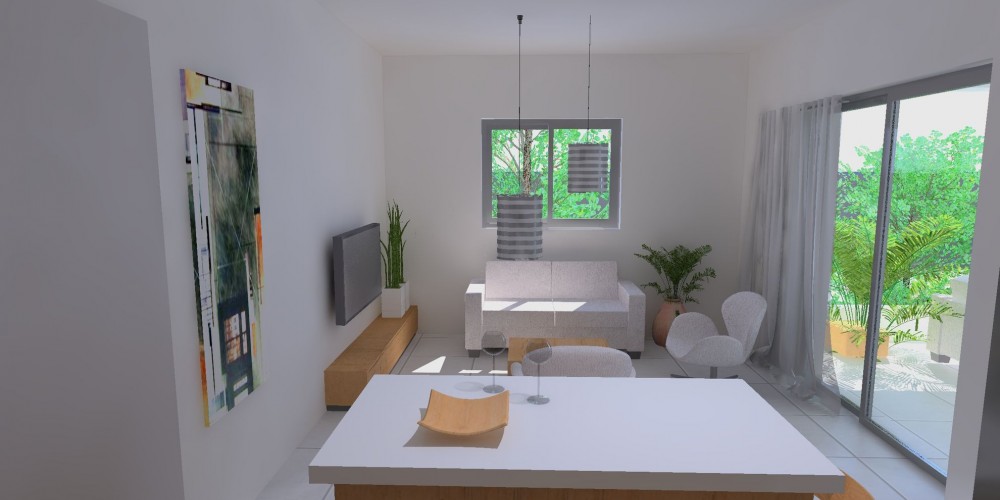 Первый этаж включает парковочные места и кладовые. Здание состоит из квартир с 1 и 2 спальнями.