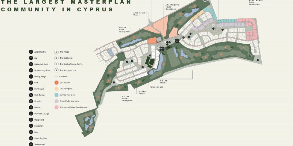 Раскинувшийся на площади 1,4 миллиона квадратных метров, проект будет иметь 18-луночное поле для гольфа чемпионского класса с ультрасовременным клаб-хаусом, торговую площадь с магазинами, разнообразные рестораны, кафе, бары и винные бистро, а также Wellness-центр с открытым бассейном, комплексом для спа-процедур, фитнес-зоной, лужайками для йоги и медитации. Предложение жилой недвижимости будет включать 500 вилл и около 250 квартир с общей площадью застройки всего 150,000 квадратных метров, при этом комплекс получит обширные зеленые зоны с пешеходными и велодорожками протяженностью более 10 километров, детскими площадками, открытым амфитеатром, теннисными кортами и баскетбольными площадками.