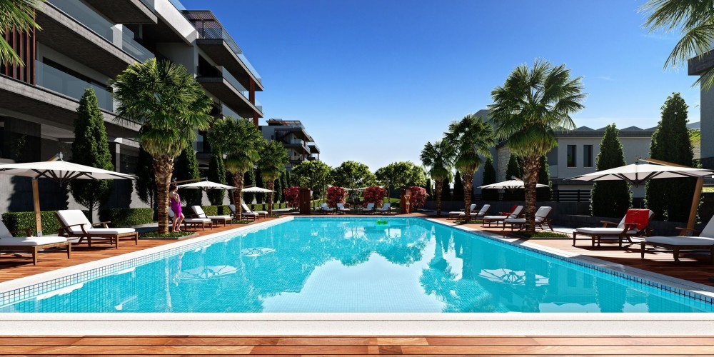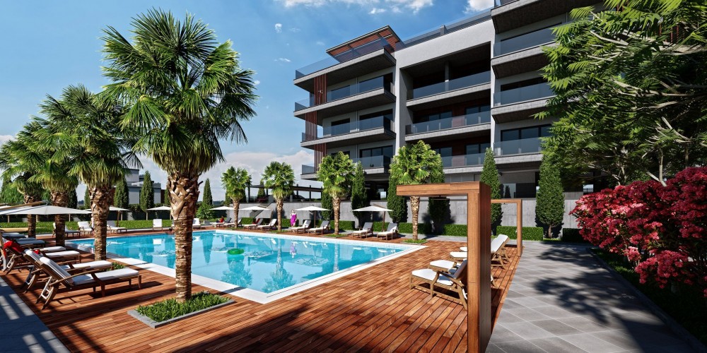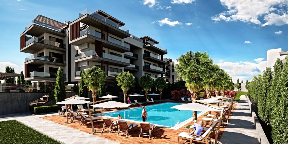 Пластика фасадов, алюминиевые элементы и стеклянные балюстрады отражают динамичность города, а экстерьерные панели под дерево и просторные террасы — расслабляют и настраивают на отдых и уютные семейные вечера.
