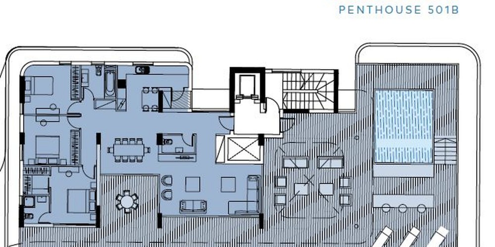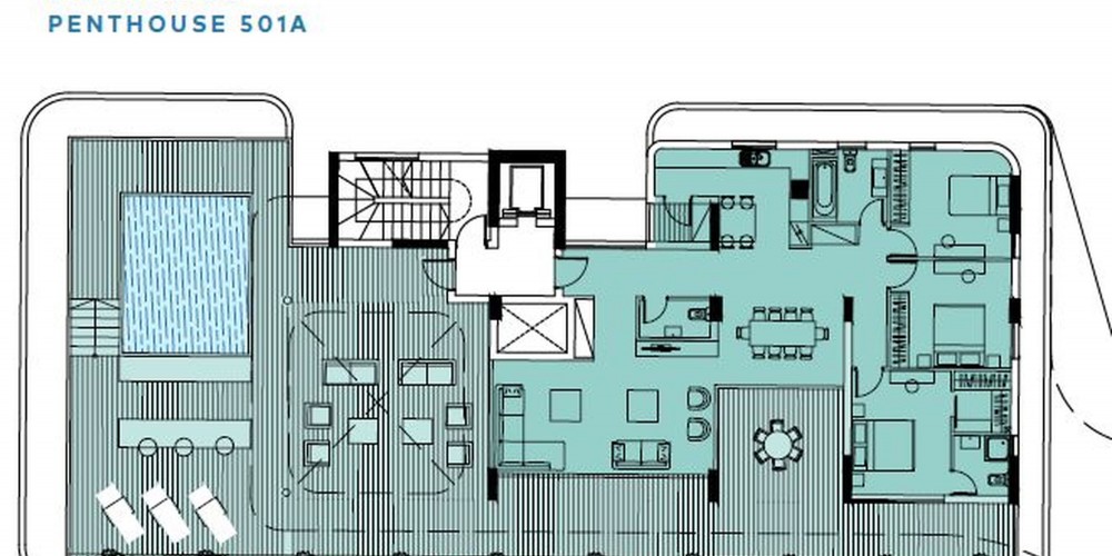 В двух зданиях 26 квартир, каждое с отдельным входом. Здания расположены в самой северной части участка, что обеспечивает максимальное количество парковочных мест. Каждое здание состоит из 12 квартир на первых четырех этажах (2 квартиры с 2 спальнями и 1 квартира с 3 спальнями на каждом этаже) и пентхауса с 3 спальнями с садом и бассейном на пятом этаже. Каждая квартира имеет одно парковочное место и кладовую. У каждого пентхауса есть дополнительное парковочное место.