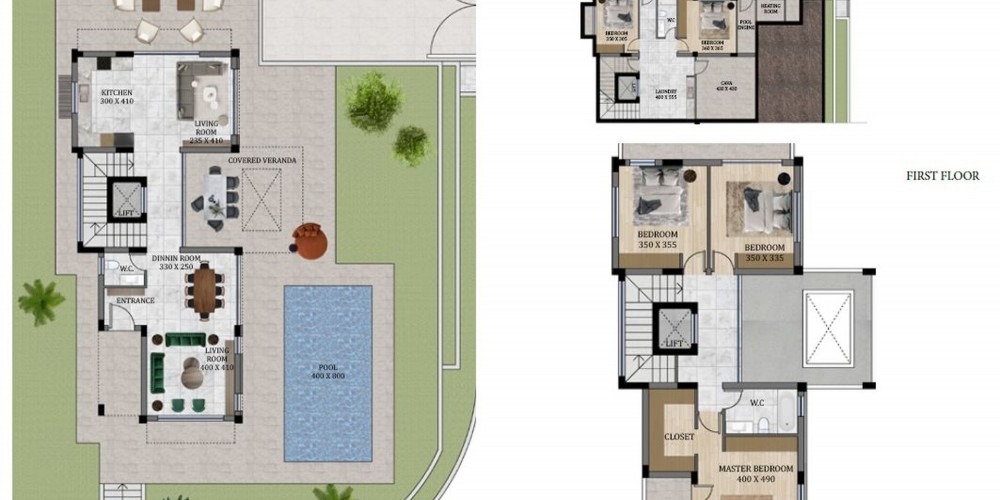 Все виллы имеют частную парковку, частные зеленые сады, бассейн, зону отдыха на открытом воздухе и большие балконы. Комплекс закрытого типа и окружен природой, что дает ощущение полной релаксации.