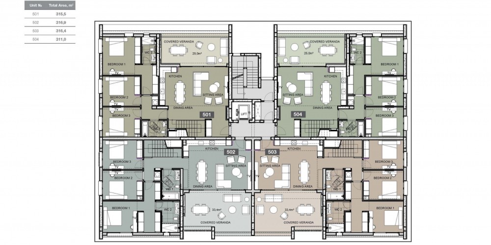 Жилой комплекс, предлагающий роскошь и элегантность. Все квартиры и пентхаусы тщательно продуманы до мельчайших деталей. Комплекс представляет собой 5-этажное здание с 24 квартирами и 4 роскошными пентхаусами с частными террасами на крыше и бассейнами. Полностью оборудованный тренажерный зал и сауна зарядят вас или просто снимут стресс. Расслабьтесь в общем бассейне в приятной обстановке.