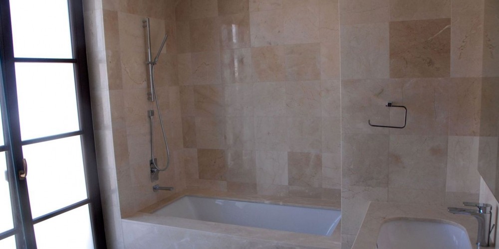 - Полы и стены в ванных комнатах из дорогих сортов мрамора и гранита