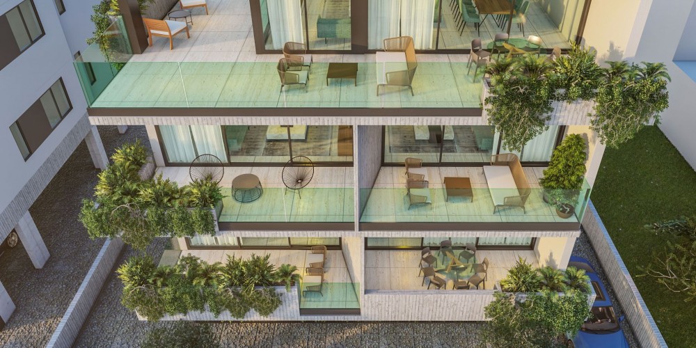 Проект состоит из четырех квартир с 2 спальнями и пентхауса с 3 спальнями.