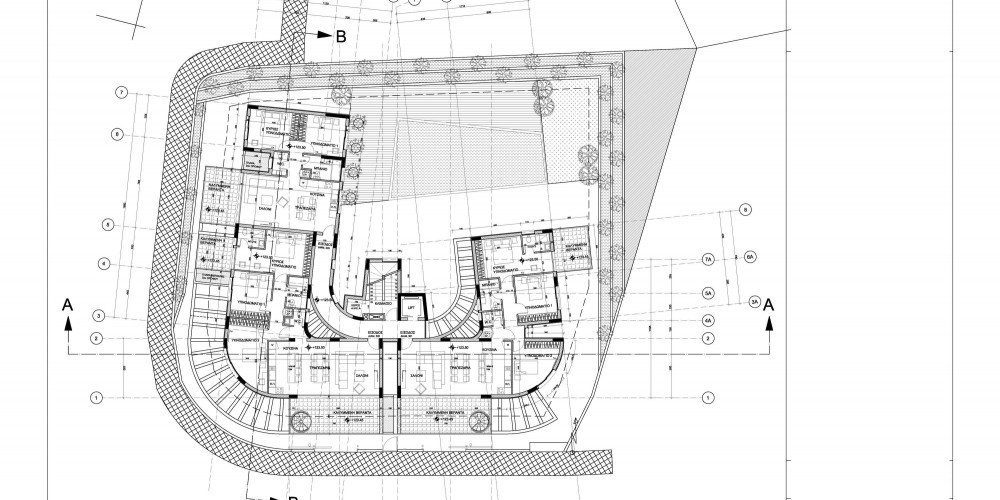 Первый этаж здания состоит из парковки и кладовых помещений. Кроме того, около проекта есть большой зеленый парк, который принадлежит муниципалитету, а это означает, что никому не разрешается когда либо там строить.