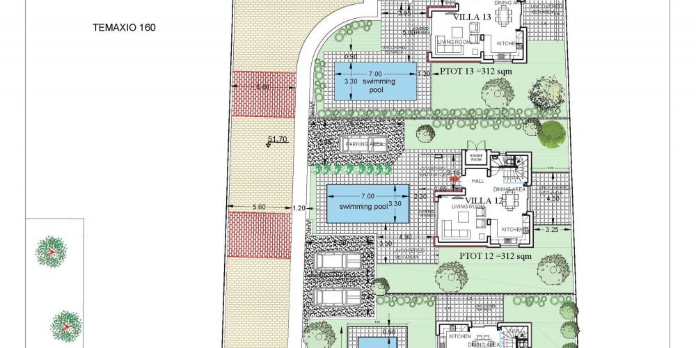 Проект состоит из 4 вилл современного дизайна с открытой планировкой, с 3 спальнями, 2,5 ванными комнатами и бассейном. Виллы будут иметь просторную гостиную, кухню с кварцевыми столешницами и обеденную зону рядом с ней. В этих зонах будут большие окна, которые пропускают много света и открывают вид на сад. Главная спальня будет иметь собственную ванную комнату.