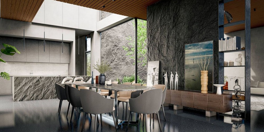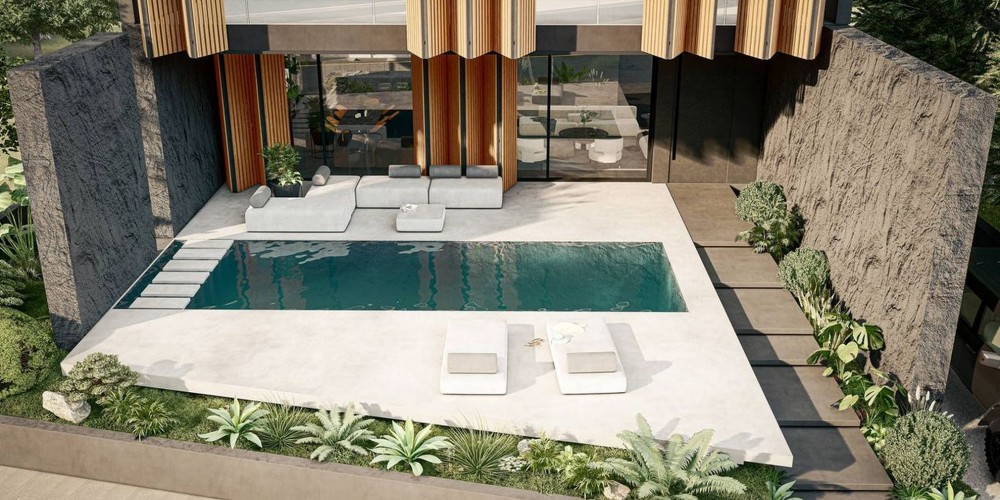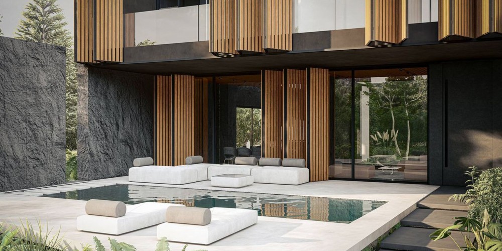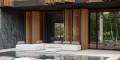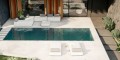Двор состоит из полукрытой веранды, открытого патио, зоны для професионального барбекю и просторной кладовой. Пышный бассейн, который может похвастаться изготовленной на заказ мозаикой UMA , окружен освещением и призван действительно создать особую атмосферу.