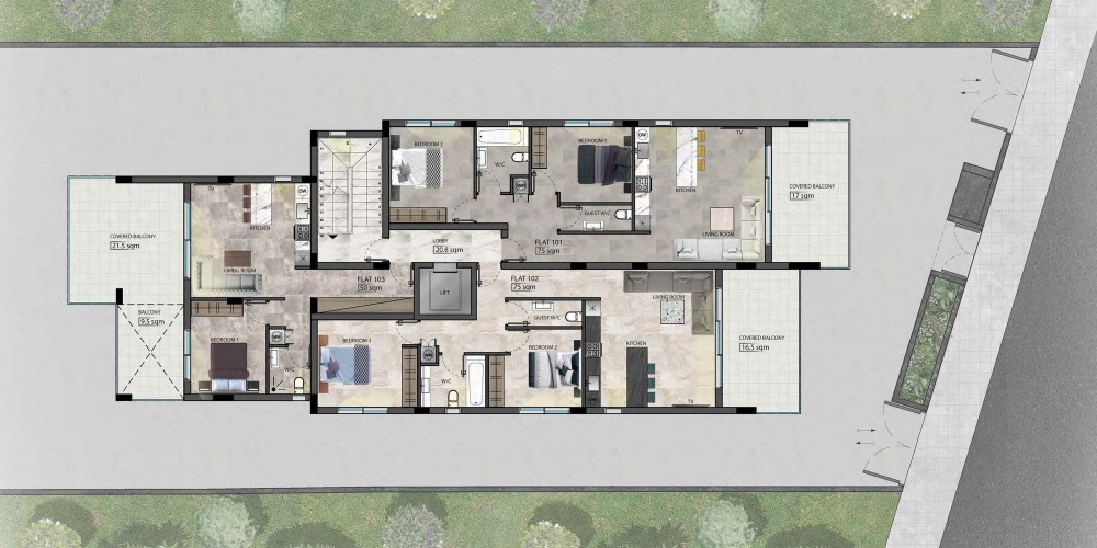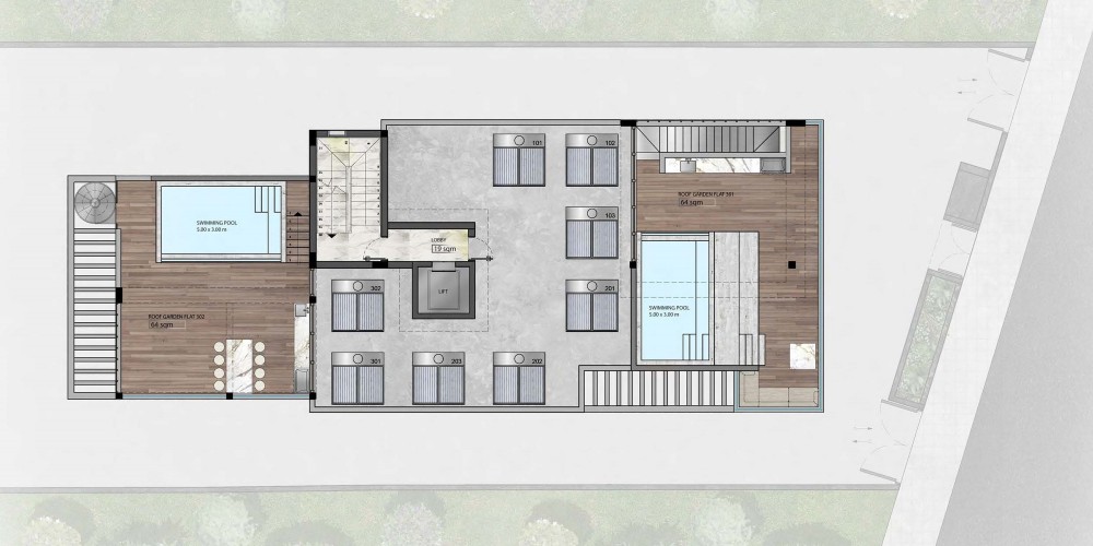 Проект расположен в предстоящем районе Ипсонас, всего в 5 минутах от шоссе. Район находится недалеко от города Лимассол, но в то же время далеко от шумного центра. Проект разработан в соответствии с современными стандартами. Это жилое здание состоит из трех этажей и шести квартир, две из которых имеют частный сад на крыше и бассейн. Благодаря эстетичному фасаду и внутренней планировке, создающей просторные и функциональные апартаменты, проект является идеальным выбором для семей и частных лиц.