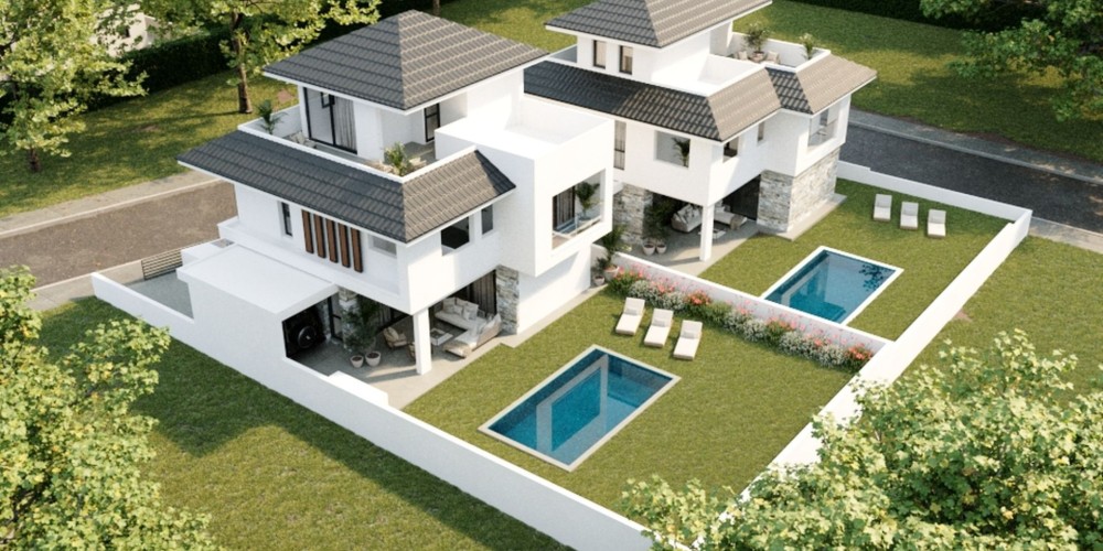 Эти две виллы расположены в Туристическом районе Ларнаки (северная часть города), в пешей доступности до моря. Каждая вилла будет спроектирована индивидуально с возможностью установки частного бассейна. Виллы будут иметь двойную парковку, частные сады. Виллы будут состоять из 5 спален (+ есть дополнительная комната) и будут иметь вид на море и горы.
