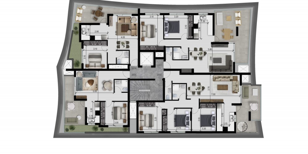 Проект будет состоять из шести квартир с 1 спальней, пяти квартир с 2 спальнями и одного пентхауса с 3 спальнями.