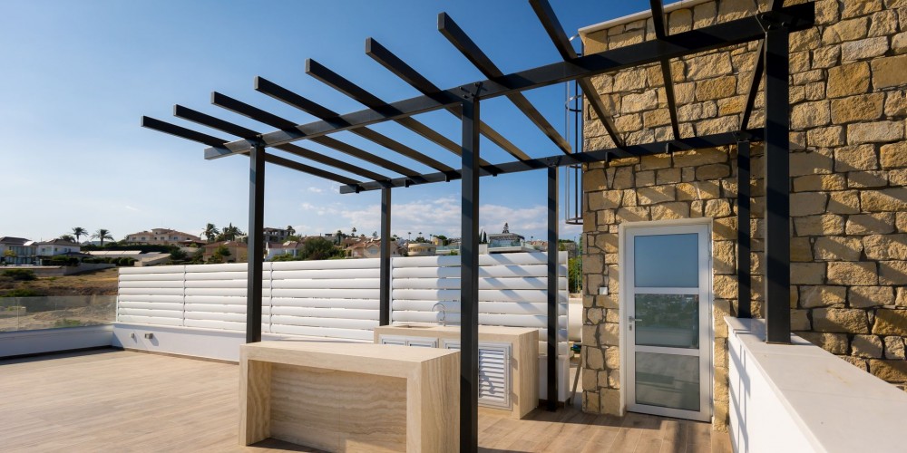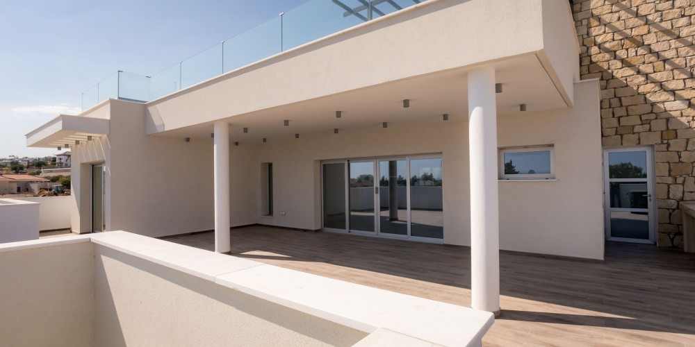 Здание имеет современный дизайн и состоит из 2 дуплексов на первом и втором этажах, каждый с 2 спальнями с ванными комнатами и гостиной открытой планировки. Третья квартира находится на первом этаже, а пентхаус на втором этаже с открытой верандой.