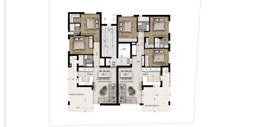Все квартиры будут иметь просторные жилые зоны, веранды. Здание находится в очень тихом районе. В окрестностях есть все необходимые удобства, а также парки и школы.