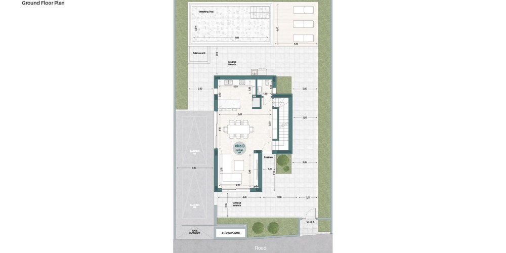 Виллы будут иметь собственный задний двор с частным бассейном, парковочные места на 2 машины и кладовые помещения.