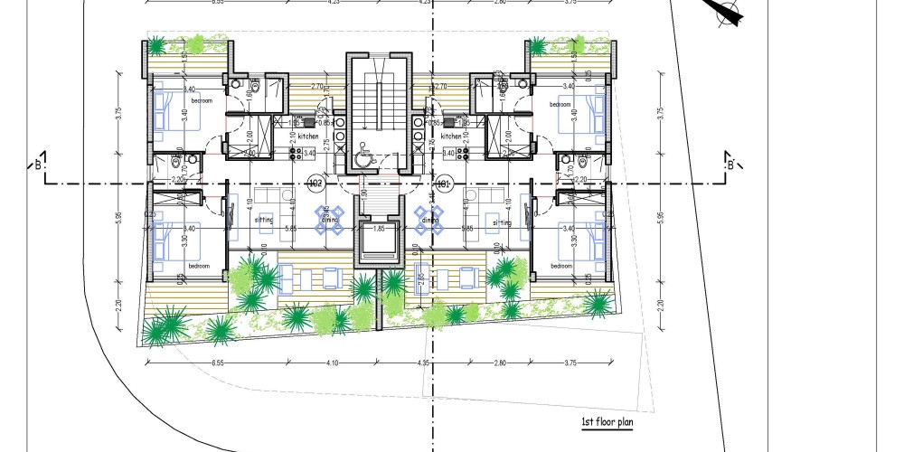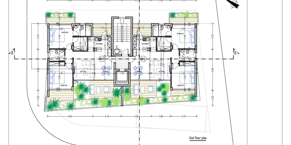 Это жилое здание состоит из шести двухспальных квартир с видом на море. Проект будет иметь общий бассейн. Каждой квартире будет выделена кладовая комната и крытая парковка.