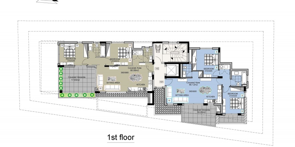Проект предлагает выбор квартир с 2 и 3 спальнями с крытыми верандами. Квартиры на верхних этажах смогут наслаждатся собственными садами на крыше.