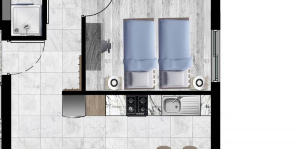 Здание состоит из трех уровней и всего пяти квартир, включая пентхаус с собственным садом на крыше. В квартирах будет кухня открытой планировки и просторная столовая/гостиная с выходом на балкон. Спальни просторные со встроенными шкафами. К главной спальне примыкает ванная комната с двойным доступом, которой также можно пользоваться из других комнат.
