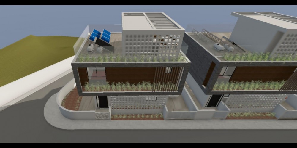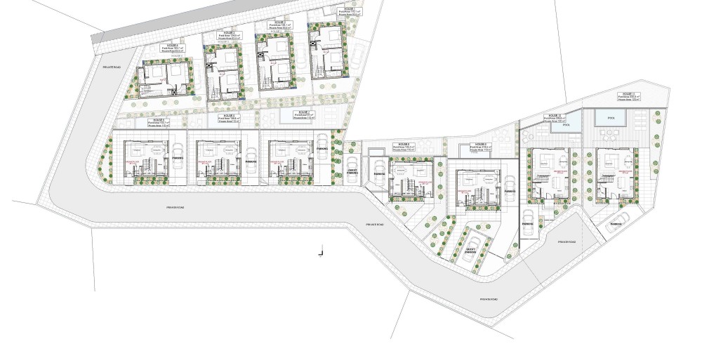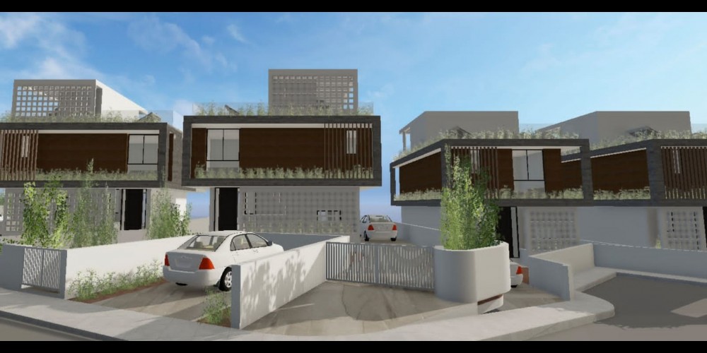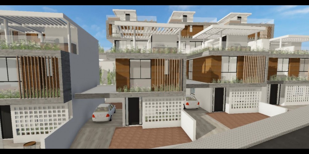 Каждый дом имеет частный сад на крыше, частную парковку, крытые и открытые террасы, пять домов с 3 спальнями будут иметь подвал и возможность установить бассейн.