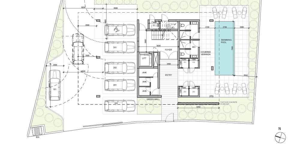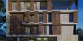 В проекте всего 5 квартир, включая пентхаус на верхнем этаже, есть общий бассейн, детская площадка, частная парковка.