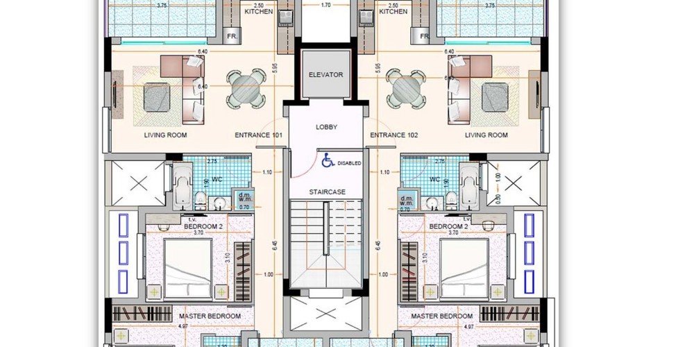 Квартиры на четвертом этаже с двумя спальнями и двумя ванными комнатами имеют большие крытые балконы, а также две комнаты на крыше с тремя ванными комнатами, эксклюзивными для владельцев, большим баром и зоной для барбекю в саду на крыше и панорамным видом на знаменитое Соленое озеро Ларнаки.