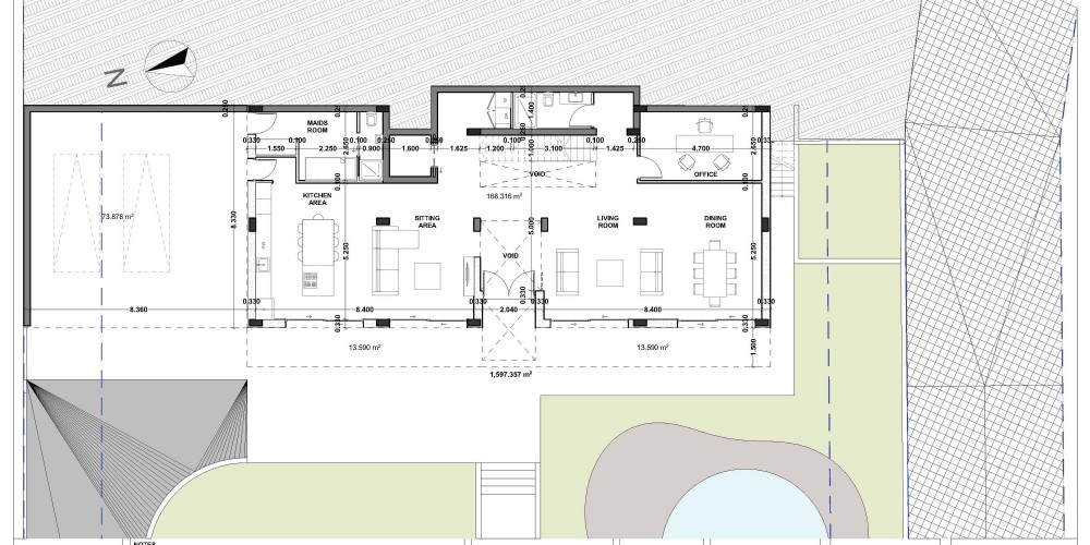 В составе открытой веранды сад на крыше 37.42 кв.м.