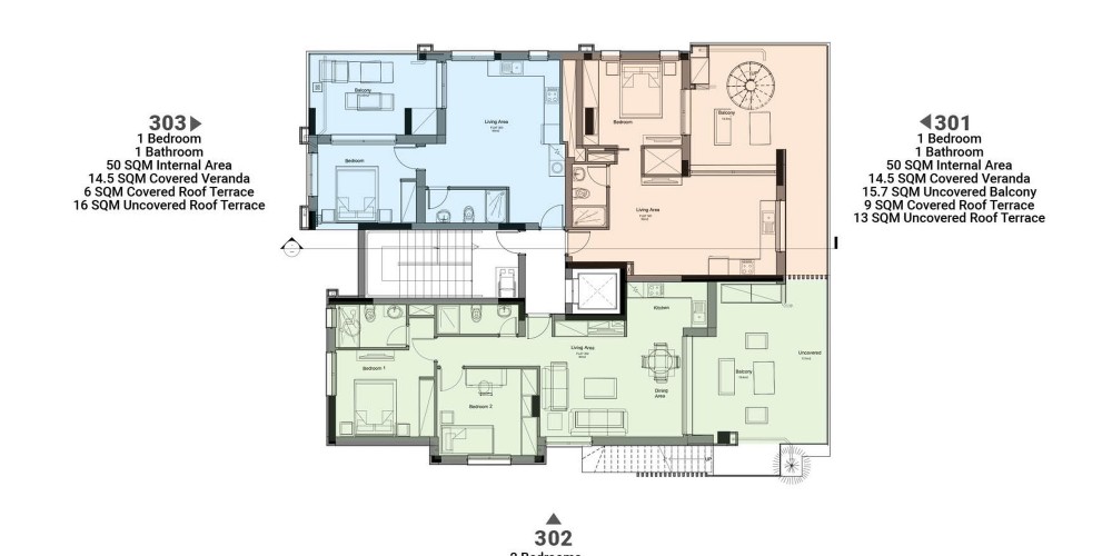 Каждая квартира сможет наслаждаться панорамным видом на окрестности со своей веранды. А квартиры на верхнем этаже также будут иметь крытые и открытые террасы на крыше.