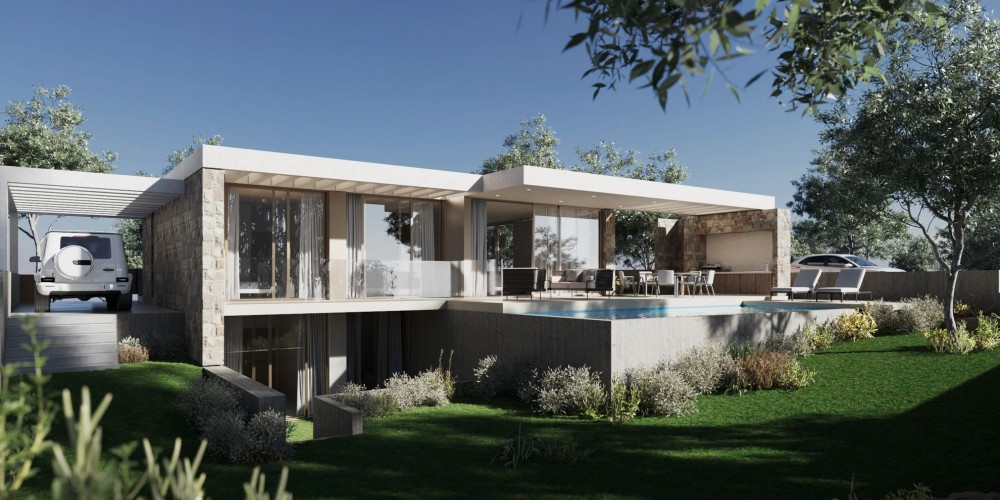 В цену входит бассейн, фотоэлектрическая система мощностью 10,1 кВт с солнечными панелями, система VRV для охлаждения, пол с подогревом, система сигнализации, электрические ворота/зарядное устройство. Мебель от 50,000 евро + НДС.