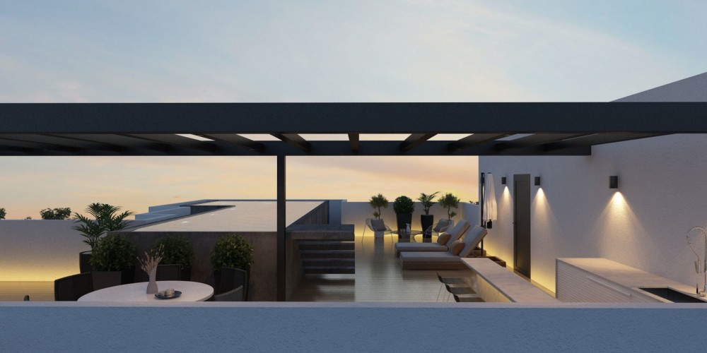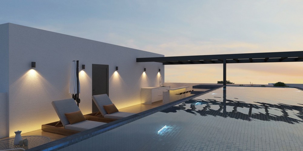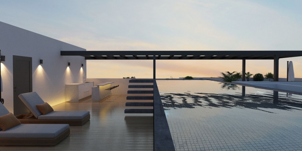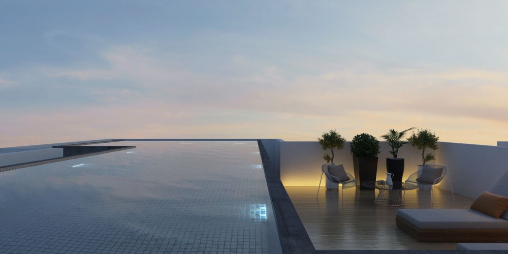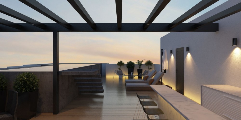 - Терраса на крыше с бассейном, баром, тренажерным залом и площадкой для барбекю.