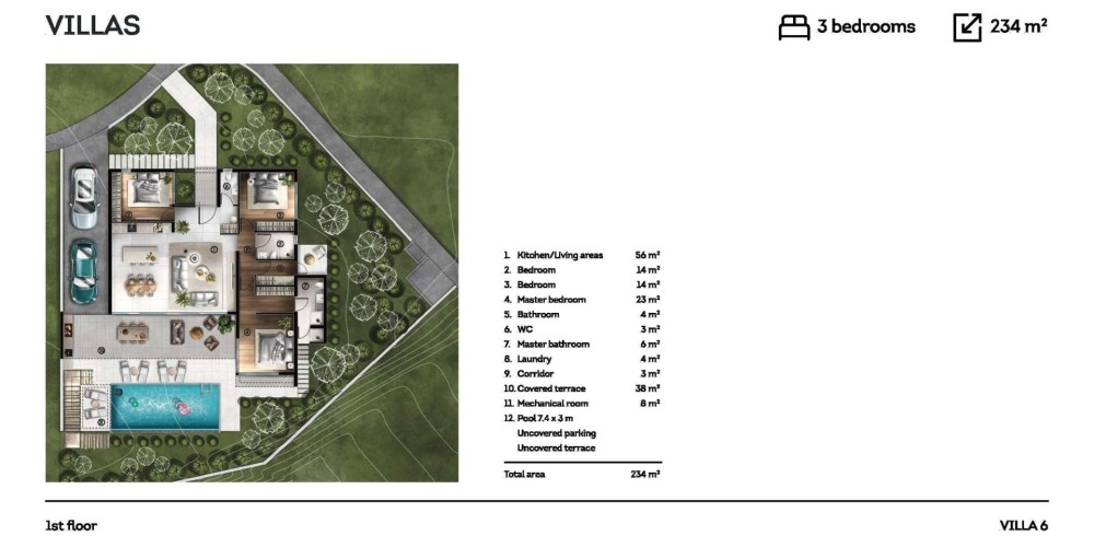 Жилой комплекс (из 6 роскошных вилл, 10 современных таунхаусов, 10 квартир премиум-класса) с уникальным дизайном, гармонично вписавшийся в природу.