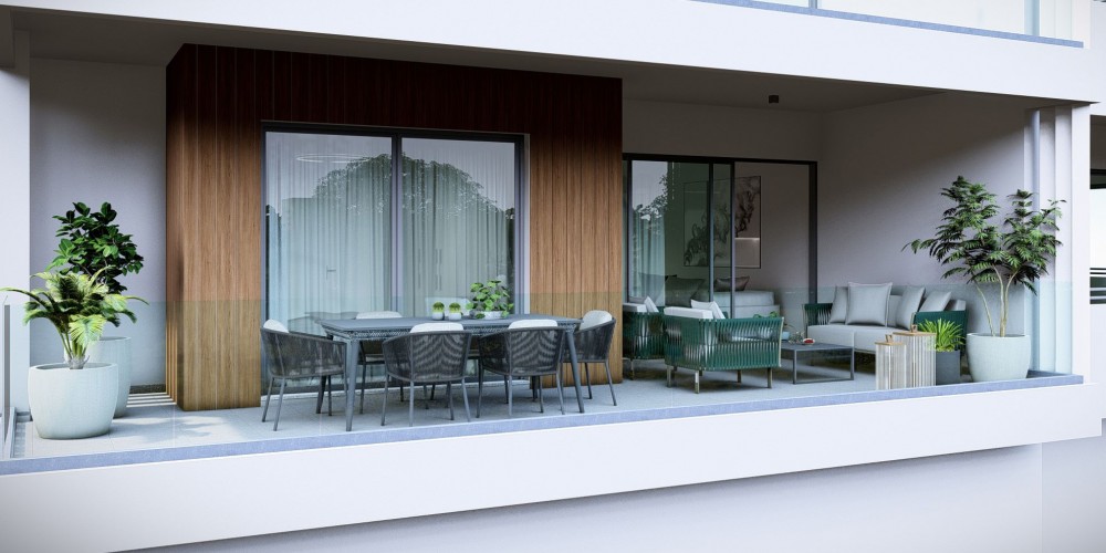 Всего этот проект состоит из 8 квартир, все с большими верандами, крытой парковкой и кладовой.