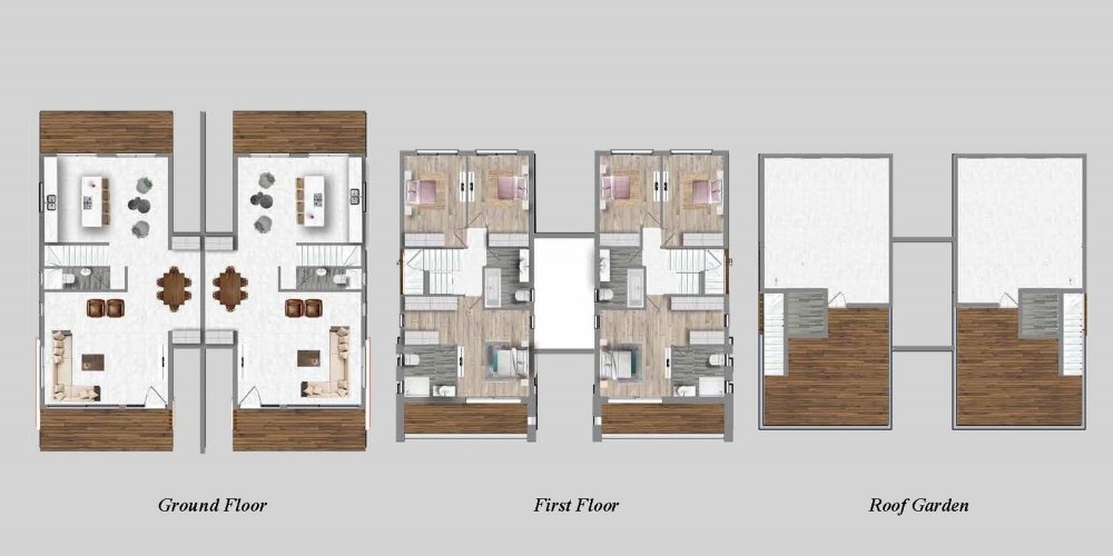Комплекс состоит из более чем 80 элегантных вилл, предлагающих на выбор различные стили и размеры, от 3 до 6 спален, на любой вкус и бюджет, с дополнительным преимуществом в виде просторной террасы на крыше с баром, с которой можно наслаждаться окружающими видами.